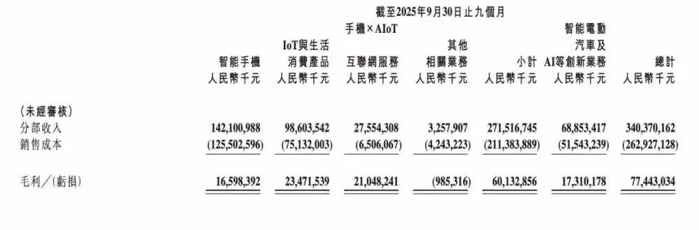 前三季度,小米集团智能电动车及AI等立异营业累计实现营收688。5亿元,累计实现毛利173。1亿元,期内毛利率约为25。1%。
