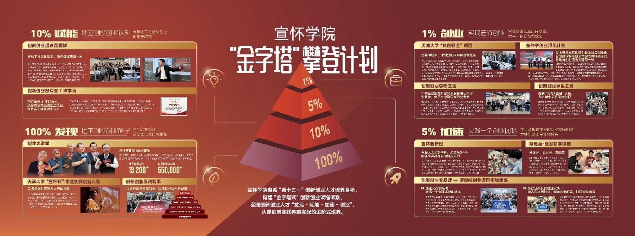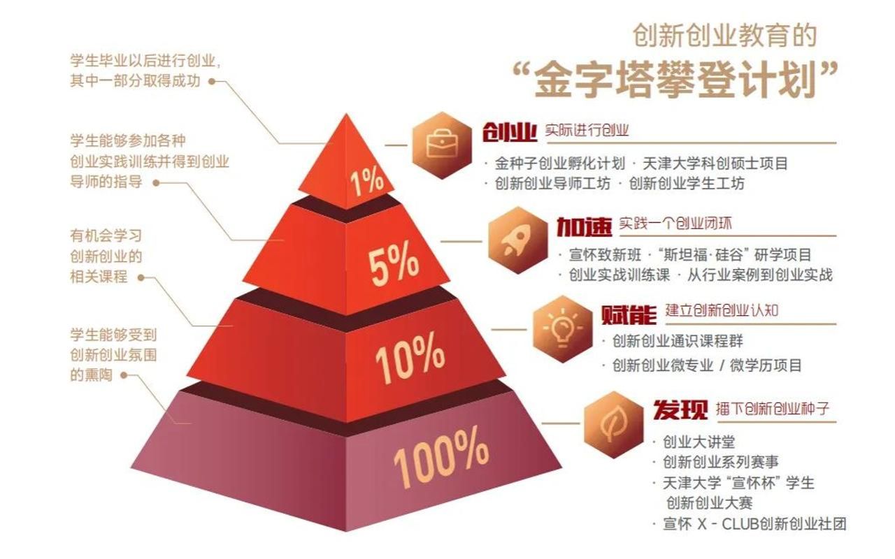 ●100%分为熏陶:走学生线,从学生中来,到学生中去,将立异创业空气的营制从内部延长至天津的高校。