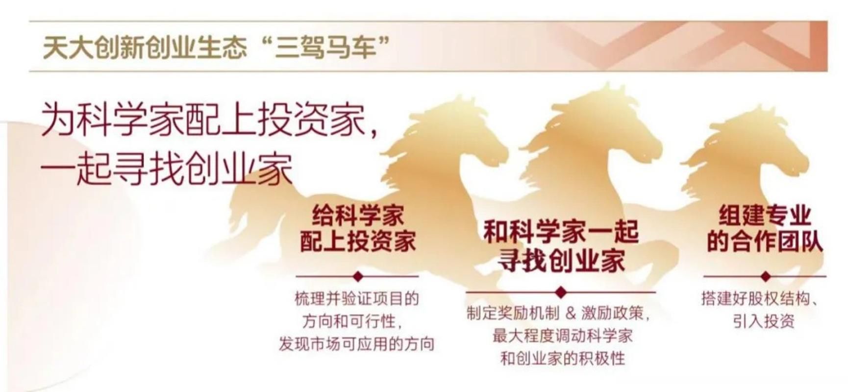 “天大+碳湾”立异创业生态模式的焦点,用基金鞭策创业,用创业留住人才;用大赛发觉项目,用母基金招引项目;用宣怀学院培育种子,用科创园进行孵化,用立异创业生态构成堆积,用“天大+碳湾”立异创业生态实现胡想。