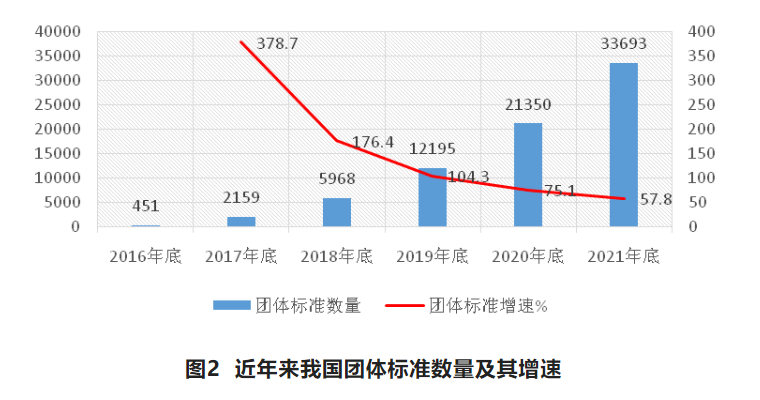 我国集体尺度相关政策一经发布,立即惹起全社会普遍关心,尺度化需求得以充实。按照全国集体尺度消息平台的统计数据,截至2021岁尾,正在该平台上注册的社会合体达5 661个。近年来正在全国集体尺度消息平台上注册的社会合体数量及其增速见图1。从图1能够看出,近年来虽然正在该平台上注册的社会合体增速有所放缓,但仍达到30%的增速。正在所有的注册社会合体中既有雷同中国机械工业结合会、中国口岸协会等某个行业范畴的组织机构,同时也有雷同济南市章丘区铁匠手工艺行业协会、长垣县起沉配备制制行业协会、无锡市口岸起沉机械行业商会等地区性行业协会、商会。