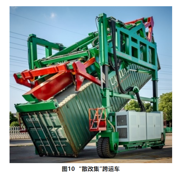 近年来新研发的各类“散改集”“集改散”集拆箱跨运车及其工艺系统被使用于口岸。“散改集”跨运车见图10。